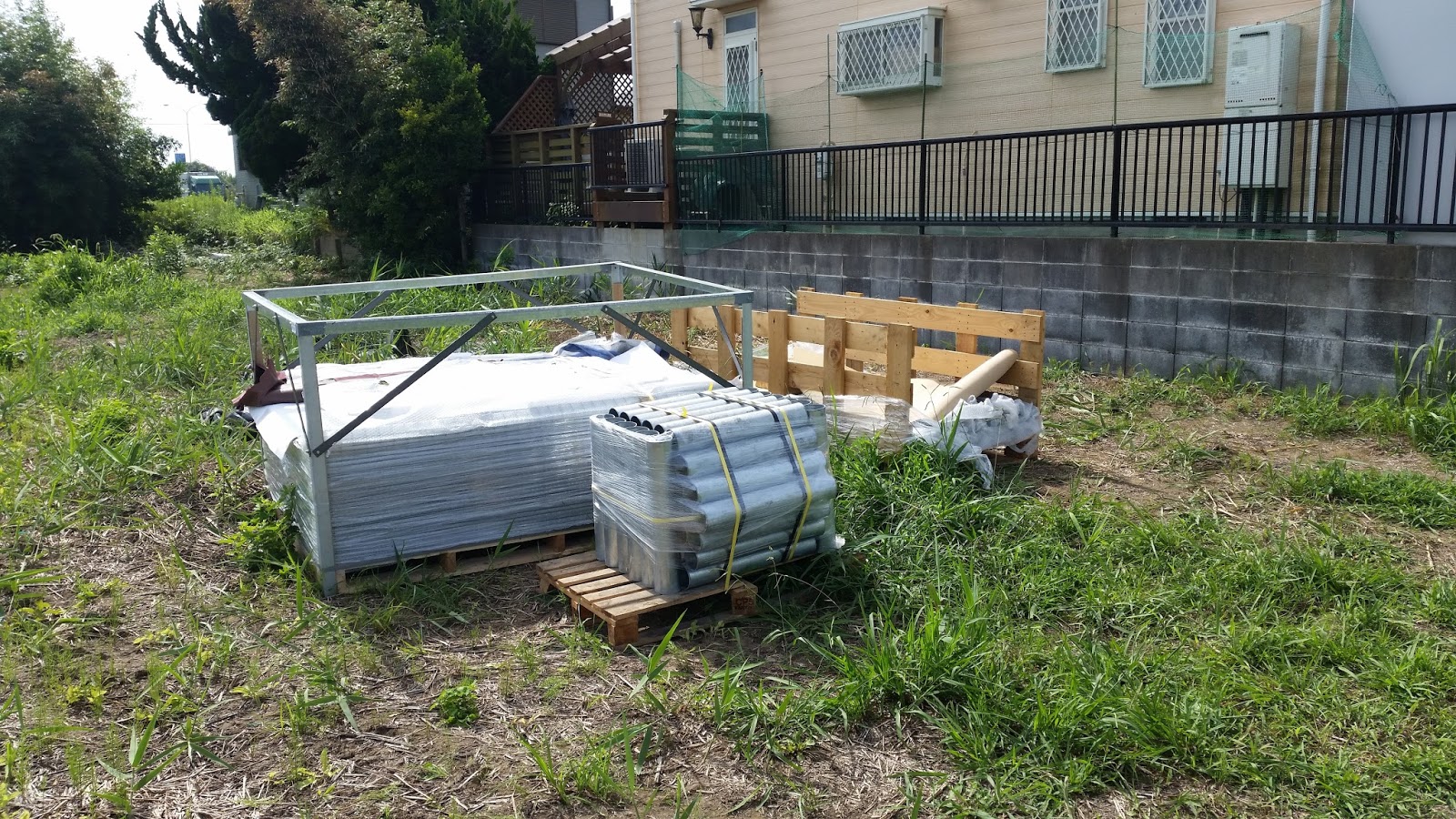 7月下旬、部材が到着。着工です。